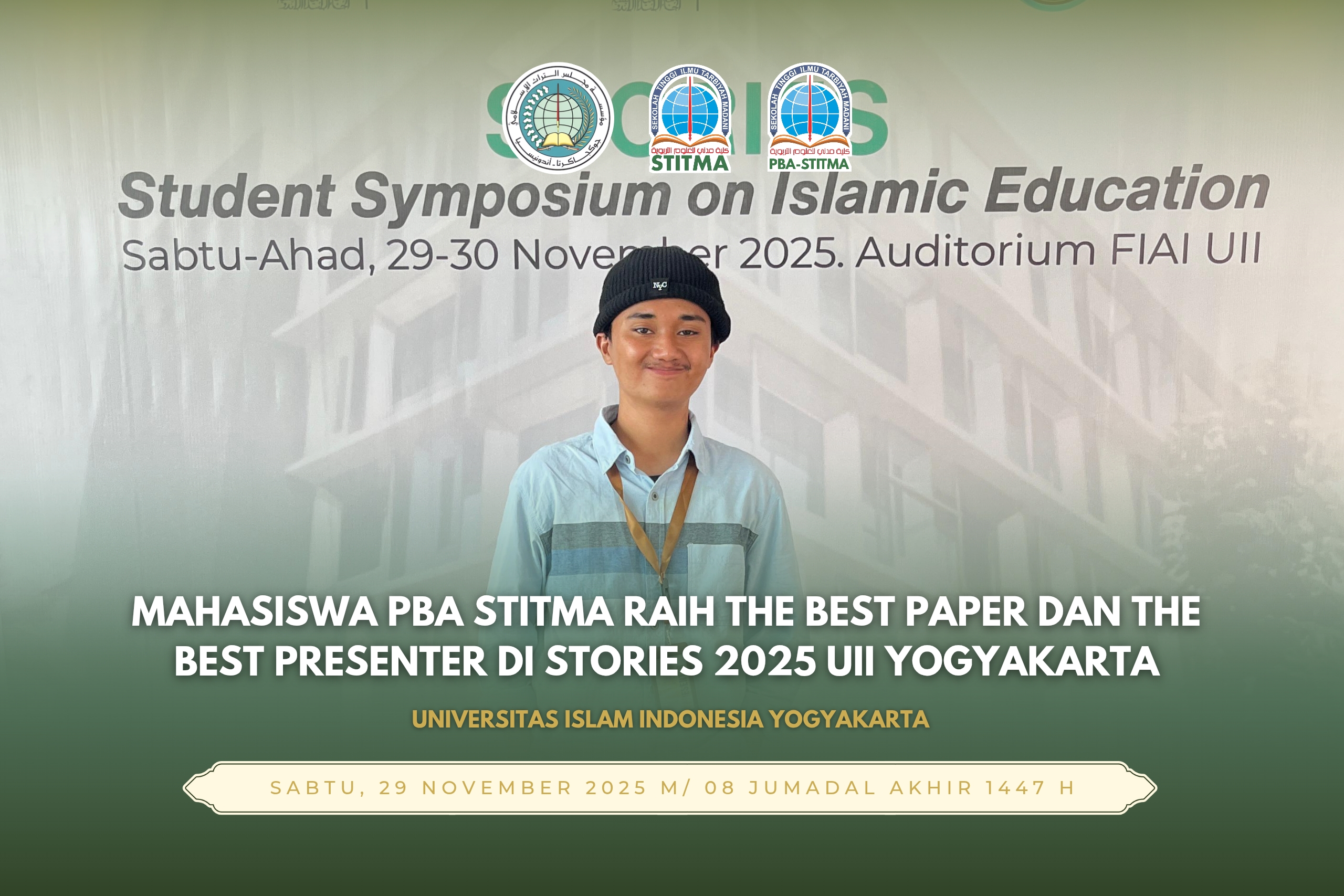 Sleman, 29 November 2025— Ajang STORIES 2025: Student Symposium on Islamic Education kembali menjadi ruang bertemunya gagasan terbaik dalam pengembangan pendidikan Islam di era digital. Pada tahun ini, Program Studi Pendidikan Bahasa Arab (PBA) STITMA Yogyakarta menorehkan prestasi membanggakan melalui capaian mahasiswa PBA, Faiz Azzam Alfarisy (Mahasiswa PBA angkatan 2025), yang berhasil meraih dua penghargaan sekaligus: The Best Paper dan The Best Presenter.